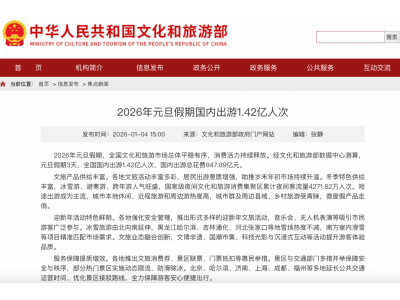 元旦假期国内出游1.42亿人次 人次平均花费597元 你花了多少?