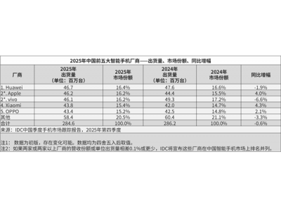 1月20日消息,华为时隔5年重夺中国手机市场第一。 继IDC送出数据后,现在另外一家调研机构Omdia给出的报告显示,2025年中国大陆智能手机市场微幅下滑1%,华为时隔五年重夺第一。 数