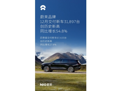 再创历史新高!蔚来公司12月交付新车48,135台,同比增长54.6%