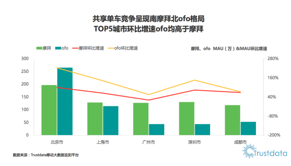 top5城市 ofo活跃用户增速大幅度领先摩拜