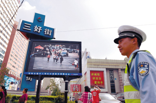 近日,沈阳文化路三好街路口的安装了户外LED大屏幕,这是沈阳交警最新启用的行人闯红灯人脸识别系统,在东北尚属首家,沈阳闯红灯抓拍进入“刷脸”时代。