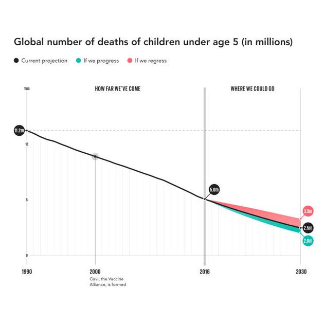 显而易见,这18个目标主要面向的是亚非拉等不发达地区,这原本就是盖茨基金会多年来的主要关注领域。用盖茨的话说,“我们总是看到这些贫困国家的艰苦条件,却忽视了这些方面所取得的进步。”数据会说话,从1990年至今,全球的贫困人口下降了一半,每年死亡的儿童数量减少了600万,3亿妇女能够得到避孕用品。