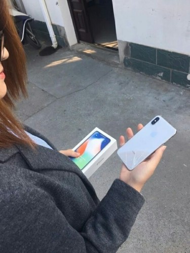 她本想朋友圈发自拍炫耀自己成为全国第一个拿到iPhone X的消费者,也许是因为太激动,手一滑就掉在了地下。从图片来看,这部iPhone X前后尽碎。