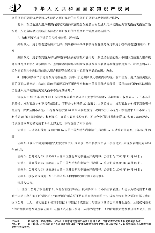 据了解,该专利是一项节约内存空间、增强用户阅读体验的专利。包括在移动端内缓存通过连接网络而加载的图片原始数据,监听当前进入用户视野的浏览页面,以判断当前进入用户视野的浏览页面中是否需要呈现新图片;在当前进入用户失业的浏览页面中需要呈现新图片时,利用所缓存的图片原始数据创建新图片;以及在当前进入用户视野的浏览页面上显示所创建的图片。