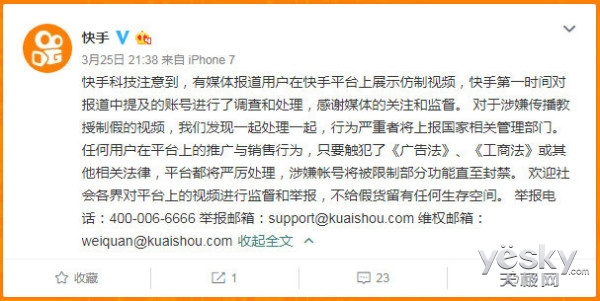 原标题:快手、抖音回应假货短视频问题:发现即处理!