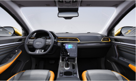 在内饰上,哈弗F5在运动风格座椅、D型运动方向盘、空调出风口等多个地方延续了套色设计概念,明亮的颜色点缀透露出张扬与个性。中控台上,9寸高清液晶触控屏取消了传统的物理按键,再搭配12.3寸全彩数字液晶仪表,极具科技未来感!