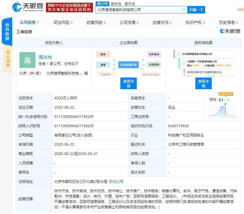 一汽集团成立旗偲智能科技公司,加码智慧出行