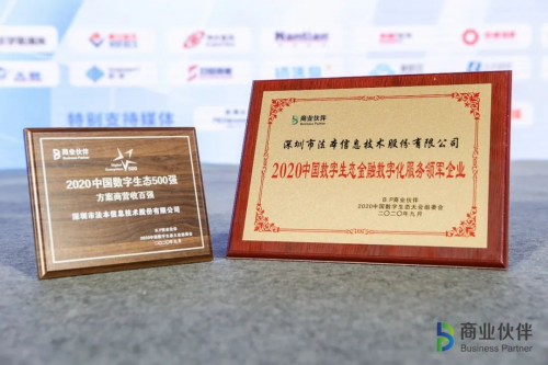 凭借金融数字化服务卓越等综合表现,法本信息荣膺“2020中国数字生态金融数字化服务领军企业”以及“2020中国数字生态方案商营收百强”双料大奖。