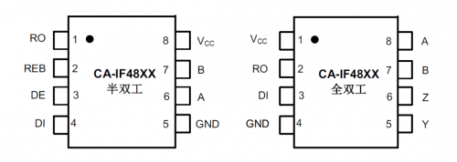 CA-IF48XX封装管脚图(左:半双工型号;右:全双工型号)