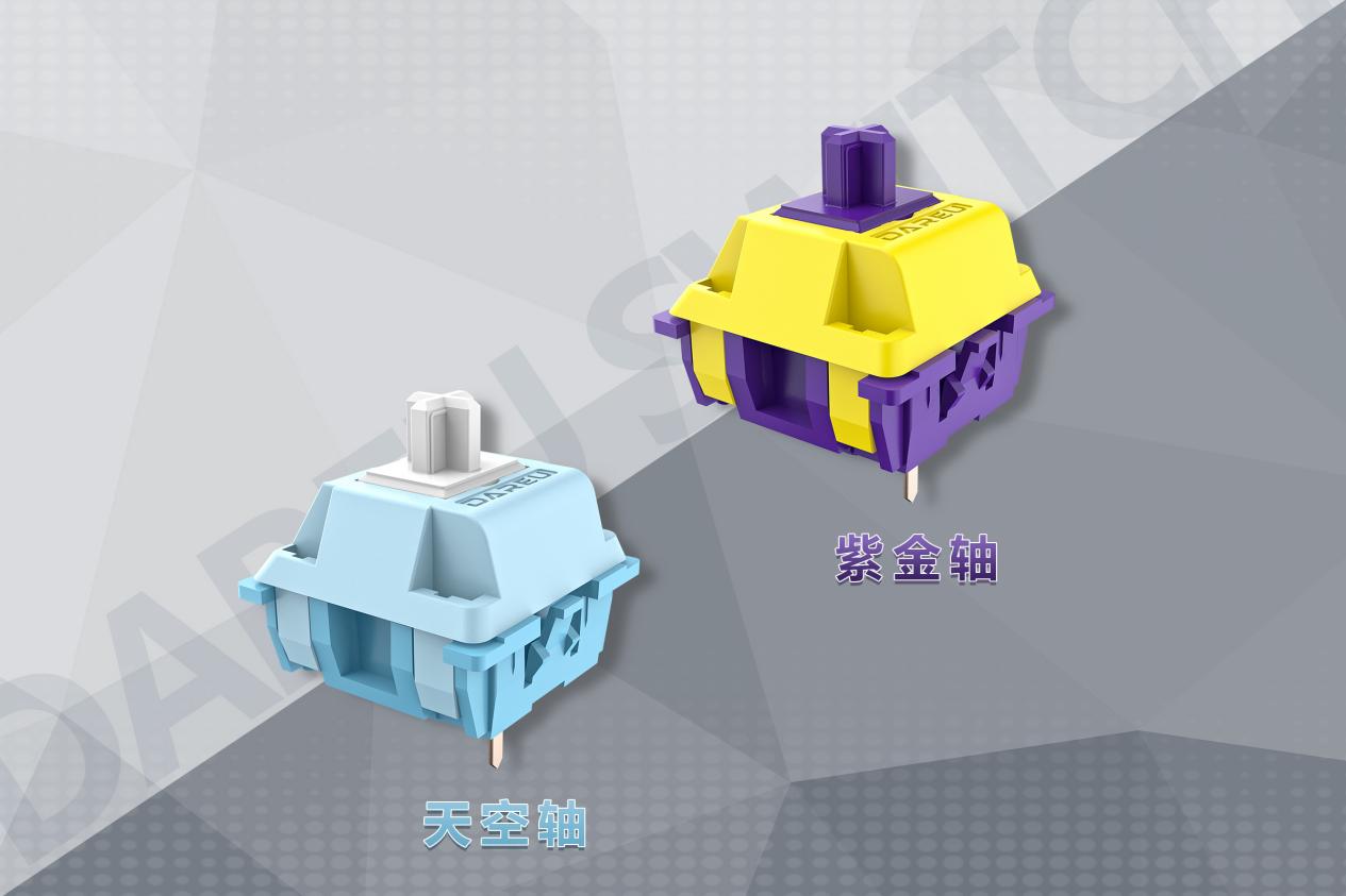 搭载达尔优定制天空轴(BLUE SKY SWITCH)与紫金轴(VIOLET GOLD SWITCH),线性轴手感与二段式段落轴手感随你选择。达尔优定制轴采用高强度合金弹簧与镀金触点弹片,让键轴手感更稳定,轴体寿命更长。