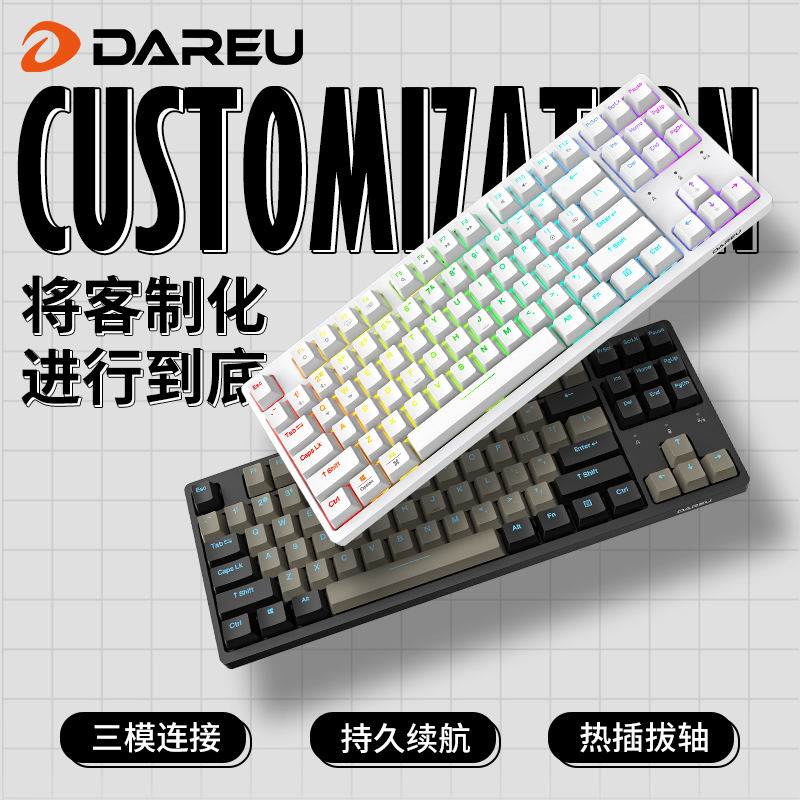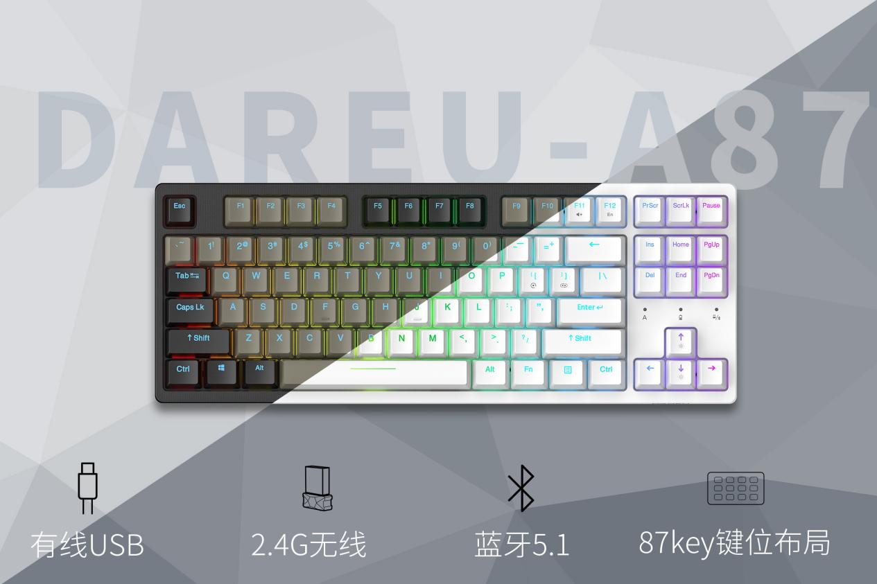 三模连接,随心DIY ▎达尔优DAREU-A87全插拔定制轴三模版机械键盘