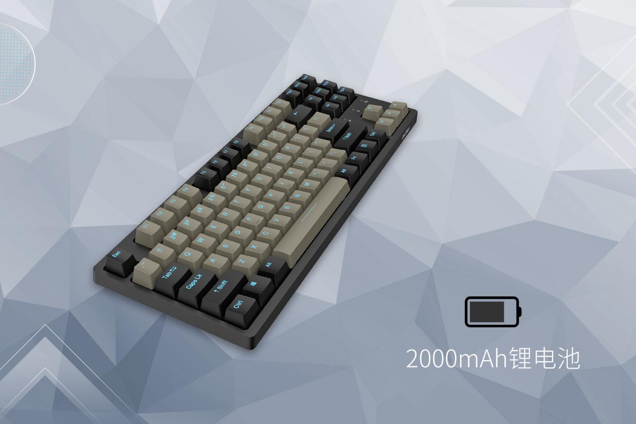 键盘内置2000mAh锂电池,且支持边充电边使用。搭配低功耗芯片和节能省电技术,可以让键盘在关灯状态连续使用约25天,即使灯光全开也可以连续畅玩约3天,更简单更便捷。