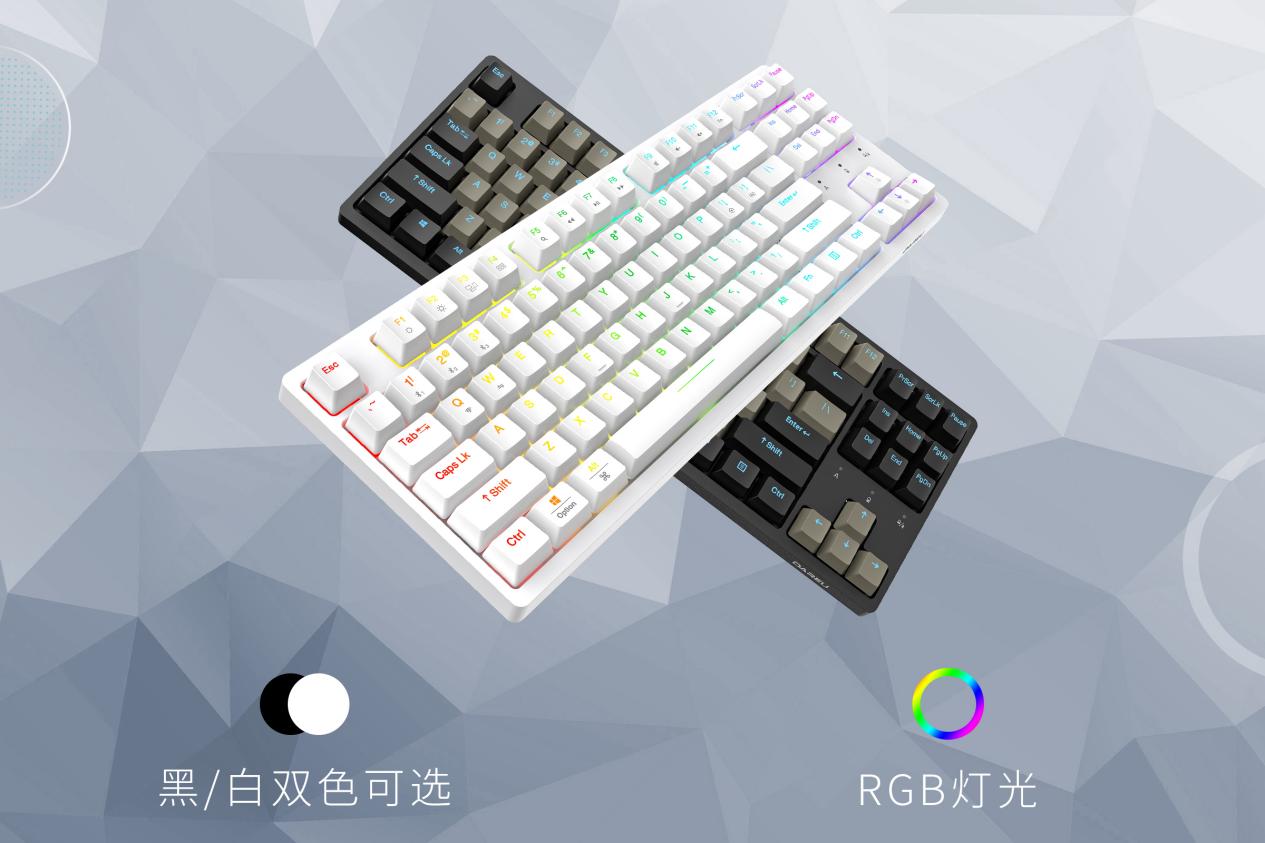 DAREU-A87全插拔定制轴三模版机械键盘拥有简约时尚的极昼白与幕夜黑双色可选,搭配多种灯光模式的RGB全彩背光设计,给你极强的视觉性与可玩性。键盘可使用USB有线连接、2.4G无线连接和BT蓝牙三种连接方式,支持连接多台不同移动设备,可快捷切换到不同的使用场景,有效兼容Win/Mac等系统设备,满足不同平台用户需求。