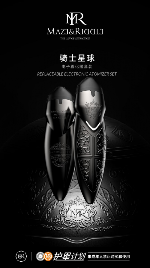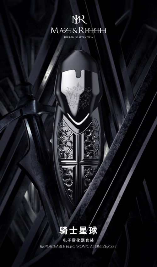 MR迷睿近期推出的潮流产品——骑士星球电子雾化器,完美再现品牌强大实力。产品设计灵感来源于中世纪欧洲军队圆桌骑士文化“骑士精神”,以守护世界的秩序、公正、平等为荣誉,用骑士的代表武器——“盾牌”和骑士精神为产品设计灵感:3V设计完美融合于产品细节(V形潮汐灯+V形鸢尾盾+V形轮廓),智能芯片、潮汐呼吸,MR迷睿第三代科技引领行业新科技。电子雾化器装饰片运用文艺复兴时期代表艺术“哥特式建筑艺术“,结合欧洲中世纪鸢尾盾造型及欧洲王室之花鸢尾花为盾牌的品牌徽章,产品倡导勇敢无惧、崇尚自由、追求荣誉的骑士精神,还将哥特风格纹理、鸢尾花等元素、锌合金电镀复古材质配色等应用到了MR迷睿新品骑士精神的产品设计上,表达了对于骑士精神的强烈歌颂。