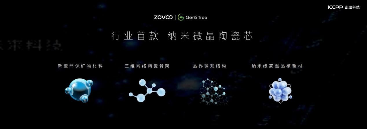 在先进陶瓷技术方面,针对目前陶瓷雾化芯产品普遍存在口味衰减、口感还原度低、粘粉、掉粉等技术瓶颈,ZOVOO造雾主开展了全面技术攻坚,经历了1000天的研究尝试了2000组材料配方、历时120天的循环测试、通过1000多次全球雾化爱好者的评测、研发10万件产品试样,提交了300多份知识产权申请,最终GENE TREE得以诞生。