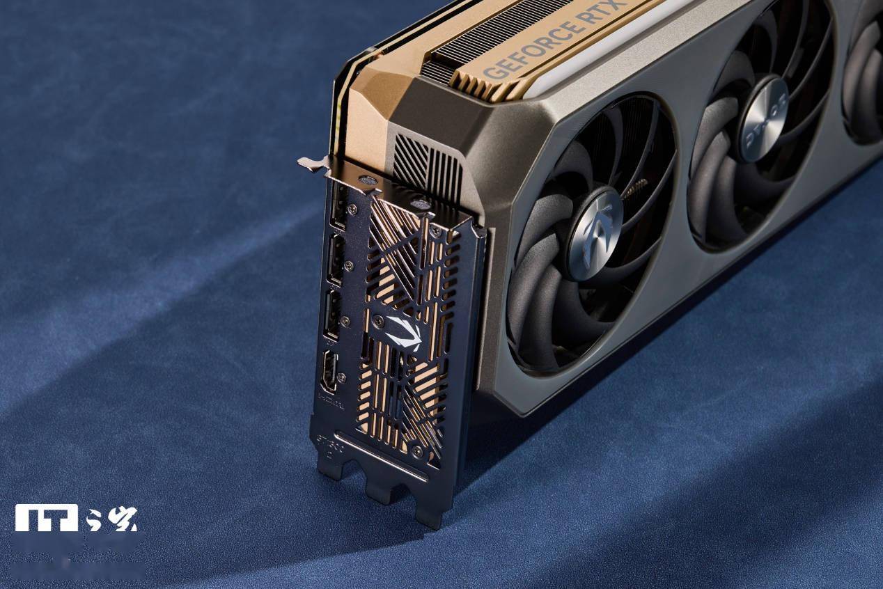 接口方面,索泰GEFORCE RTX 5070 Ti 16GB AMP EXTREME INFINITY显卡提供了三个DP2.1b接口和一个HDMI2.1b接口,满足用户多样化的连接需求。I/O挡板上还印有一个醒目的白色索泰图标,彰显品牌身份。