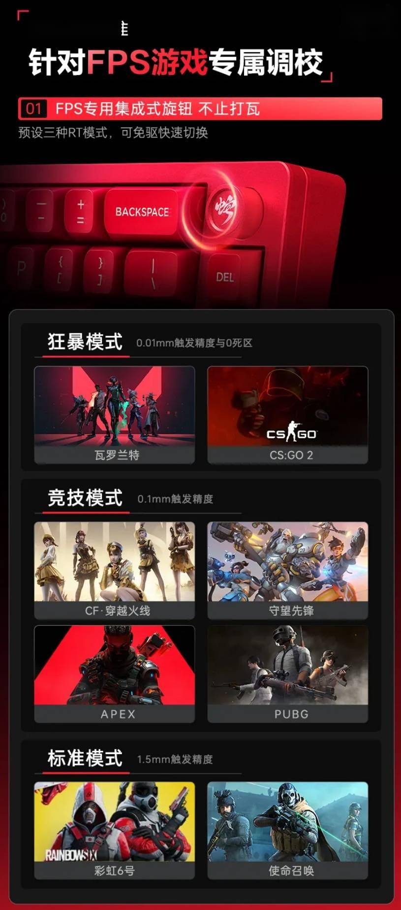 除了多样的轴体选择,VIC68键盘还在右上角配备了专为FPS游戏设计的集成式旋钮。这一设计支持预设三种RT模式,玩家可以根据不同的游戏需求快速切换,极大地提升了游戏操作的便捷性和灵活性。
