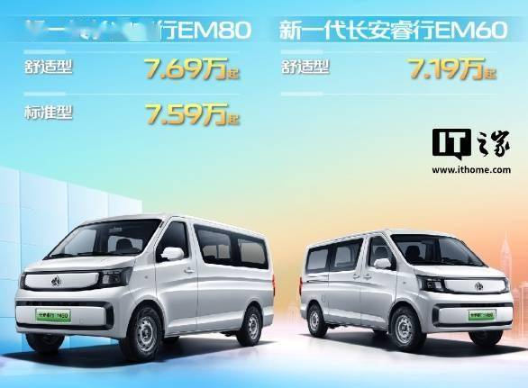 具体来看,新款睿行EM60的舒适型版本售价为7.19万元,而新款睿行EM80则分为标准型和舒适型,售价分别为7.59万元和7.69万元。这些价格定位显示了长安凯程在电动微面市场的竞争力。