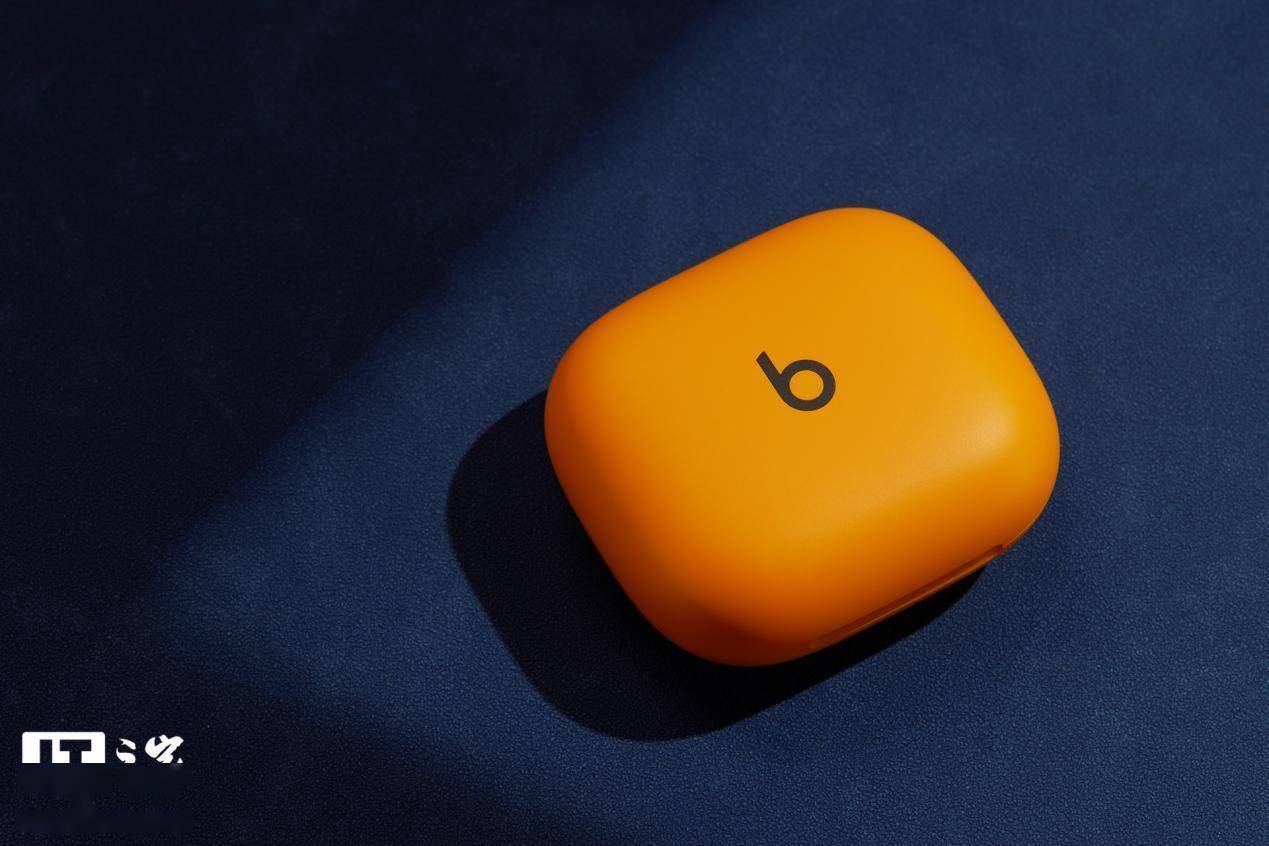 打开包装,映入眼帘的是鲜艳的橙色充电盒,十分抢眼。充电盒的设计同样简洁大方,方形外观配以圆润的边角处理,手感舒适。顶部的Beats logo与充电盒整体材质一致,彰显出品牌的高品质。