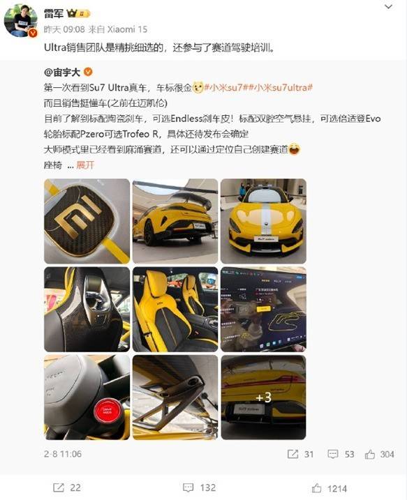 小米SU7 Ultra上市在即,Ultra Master销售团队引热议,售价81.49万起