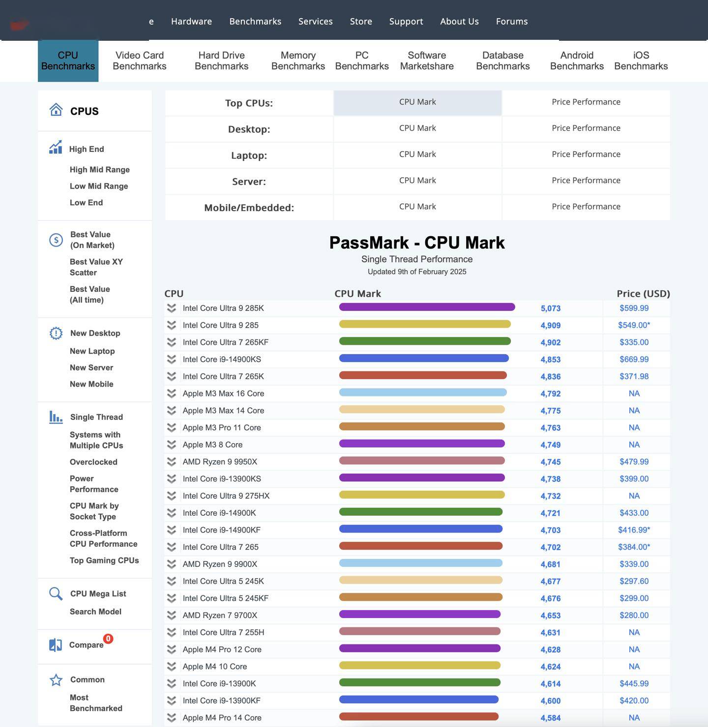 近期,计算机硬件性能测试领域传来新消息,知名基准测试软件PassMark更新了其处理器跑分排行榜。在这一次的榜单中,英特尔推出的酷睿Ultra 9 275HX处理器成功问鼎,将AMD的锐龙9 7945HX3D处理器挤下榜首,成为了当前综合性能最强的笔记本处理器。