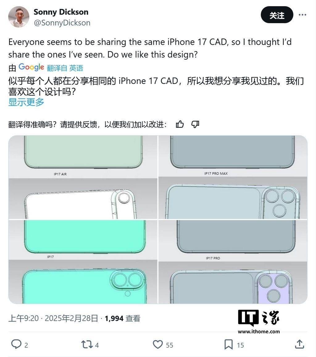 Dickson还透露了一个令人兴奋的消息:iPhone 17系列将新增一款名为iPhone 17 Air的超薄机型。这款机型有望取代iPhone 16 Plus,为用户提供更大的显示屏,同时保持亲民的价格定位。iPhone 17 Air的设计注重轻薄便携,仅配备单个后置摄像头,其市场定位和潜在竞争力值得持续关注。