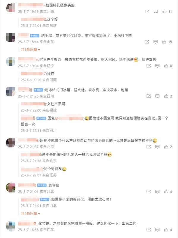 尽管如此,小米对女性用户需求的关注并未因此减少。在陈波发起的征集活动中,美容仪、化妆镜、脱毛仪等家用电器类产品成为了网友热议的焦点。这些产品不仅贴合女性日常美容护肤的需求,也展现了小米在智能家居领域的持续深耕。