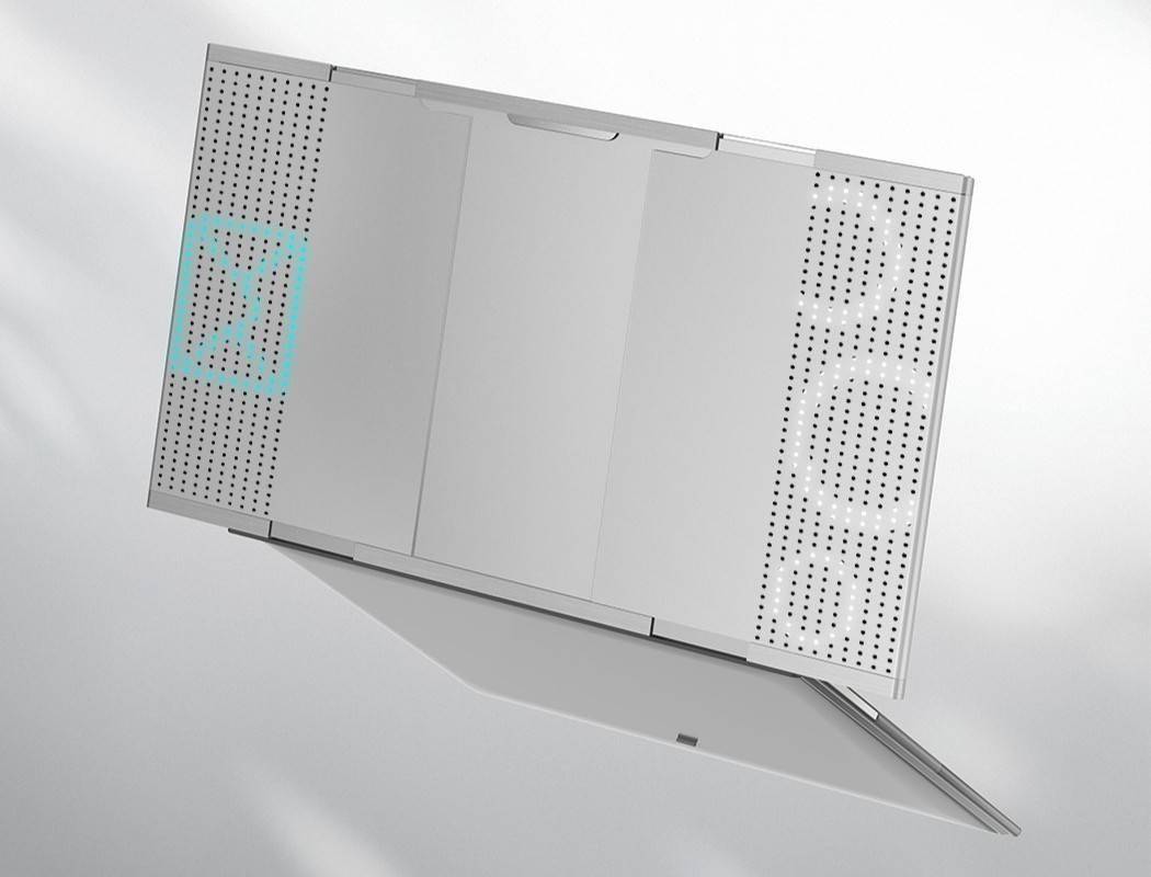 除了横向扩展卷轴屏这一亮点外,Infinite笔记本在外观设计上也颇具匠心。A面区域配备了可交互光显矩阵,这一设计不仅提升了笔记本的时尚感,更为用户带来了全新的交互体验。合盖通知显示、绘制解锁等功能,让这款笔记本在实用性与趣味性之间找到了完美的平衡点。