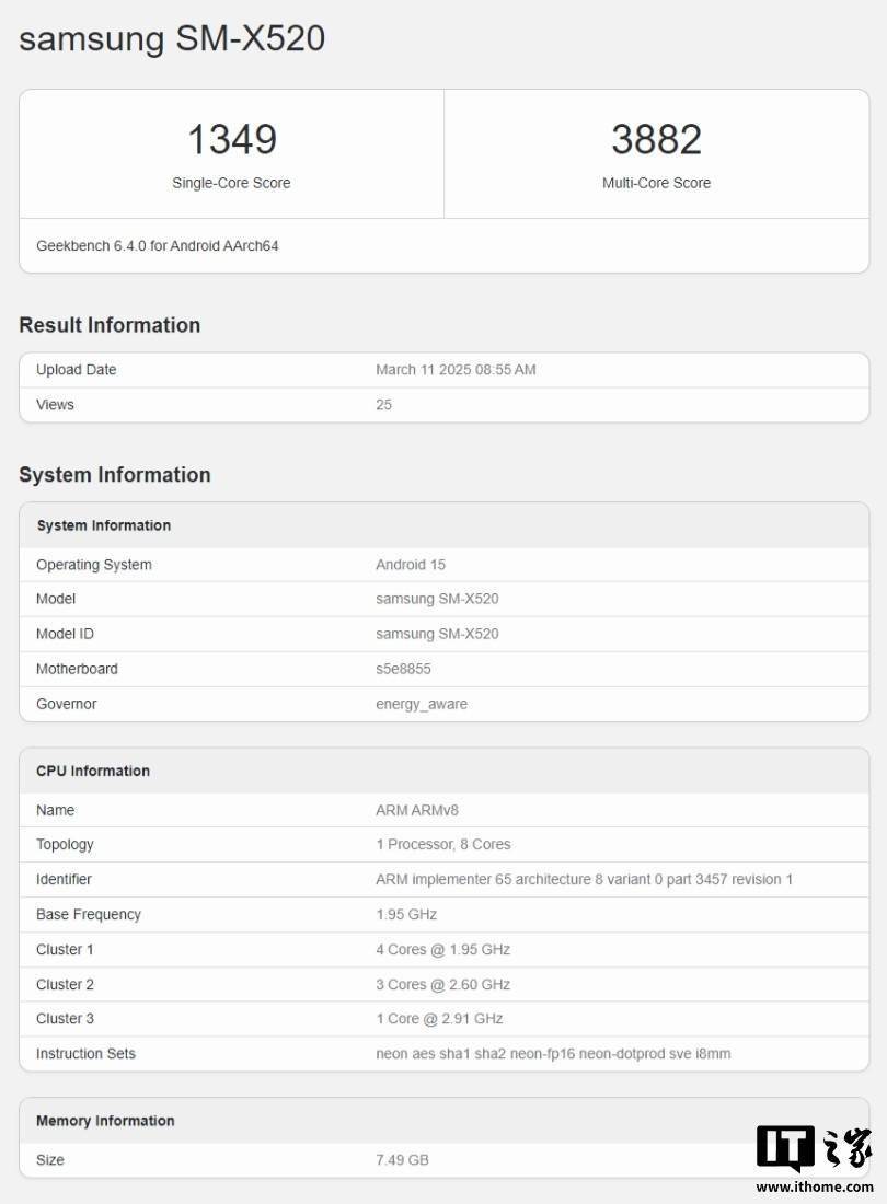 根据Geekbench的测试数据,参与测试的三星SM-X520机型极有可能是Tab S10 FE,其配备了8GB的内存,这一配置相较于前代产品6GB的基础内存容量有所提升。这两款新的FE系列平板电脑最高可支持12GB内存和256GB存储空间,基础存储容量则达到128GB。