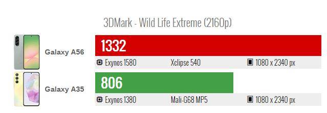 为了进一步了解Galaxy Tab S10 FE及Tab S10 FE +在GPU性能方面的表现,我们可以参考Galaxy A56(Exynos 1580)与Galaxy A35(Exynos 1380)之间的GPU性能对比。这一对比数据为我们提供了对新款平板电脑GPU性能的预期。
