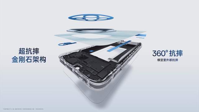 不仅如此,A5系列还采用了超抗摔金刚石架构,结合旗舰级的晶盾玻璃和铝合金中框,实现了360°的全面抗摔。这一设计让A5系列在面对剧烈温差、盐雾侵蚀等极端环境时,依然能够保持出色的稳定性和耐用性,为用户带来更加可靠的使用体验。