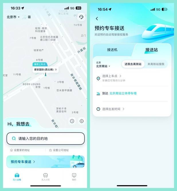 据了解,乘客现在可以通过下载“文远出行”App,轻松预约文远知行的自动驾驶出租车服务。服务时间限定在每天10:00至16:00之间,接驳点设在北京南站立体停车楼1层的自动驾驶接驳区。