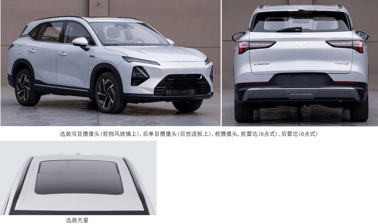 五菱星光S PHEV新车型在配置上也进行了丰富。新车可选装双目摄像头(安装于前挡风玻璃上)、后单目摄像头(位于后扰流板上)、前摄像头、前雷达(6点式)以及后雷达(6点式),提供全方位的安全监控。同时,新车还提供天窗、尾门开启标识等多种选装配置,满足不同消费者的个性化需求。