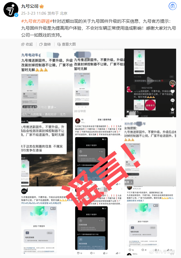 九号公司近日通过其官方平台发表了一份声明,旨在澄清近期流传的有关九号固件升级的不实传闻。该声明详细说明了九号公司固件升级的真实目的,并向广大用户做出了明确说明。