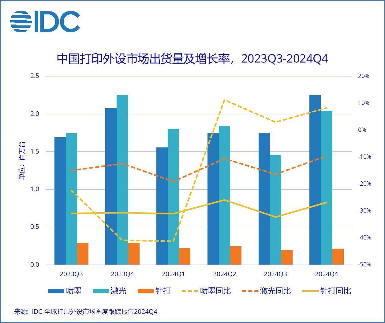 近日,知名市场研究机构IDC公布了一项关于中国打印外设市场的最新数据。据该机构统计,2024年,中国打印外设市场的整体出货量达到了1530.8万台,但与上一年度相比,却出现了12.5%的下滑。