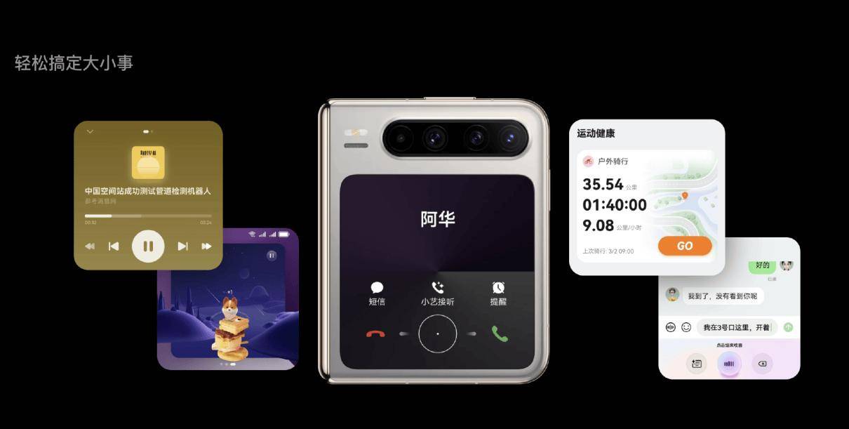 华为Pura X还特别配备了3.5英寸的1:1比例智趣外屏,覆盖了社交、娱乐等多个场景,实现了“内外皆主场”的体验。鸿蒙版高德地图等应用在外屏上支持导航、打车等创新功能,使得用户无需展开手机即可在外屏上回复消息、浏览资讯或进行游戏。行业首发的折叠屏AI外屏更是将小艺的交互体验提升到了新的高度,用户可以通过外屏右滑进入沉浸式AI对话模式,享受更加自然、流畅的对话体验。