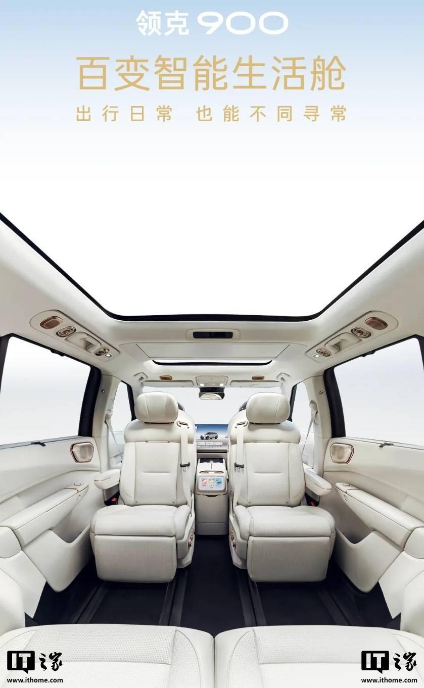 领克900采用了2+2+2式的6座布局,第二排座椅可实现前后550毫米的移动范围,第三排座椅则支持前后125毫米的移动。尤为领克900是全球首款配备双180度电动旋转座椅的SUV,第二排座椅支持向后180°/90°旋转,可轻松适配娱乐、办公、休憩等多种场景。后排还配备了30英寸6K分辨率悬浮式娱乐屏、后排控制屏、车载冰箱、折叠桌板、腿托、遮阳帘、220伏电源插口等豪华配置,并搭载了哈曼卡顿音响系统,为乘客带来全方位的尊享体验。