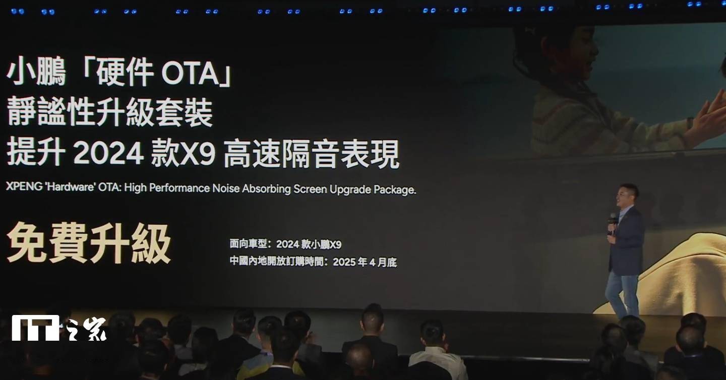 小鹏汽车董事长何小鹏在发布会上透露,所有2024款X9车主将可免费获得静谧性升级套装,该套装旨在增强车辆在高速行驶时的隔音效果,提供更加宁静的乘坐环境。这项升级服务预计将于2025年4月底开始接受预订。