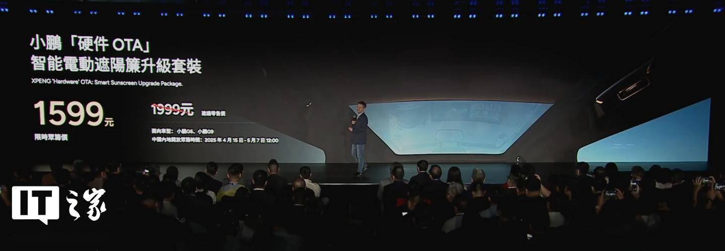 小鹏汽车还为G6和G9车主带来了“硬件OTA”升级服务。车主们可以以限时优惠价1999元升级流媒体内后视镜,或以1599元升级智能电动遮阳帘。这两项升级服务现已开放预订,并将于5月7日12时截止。