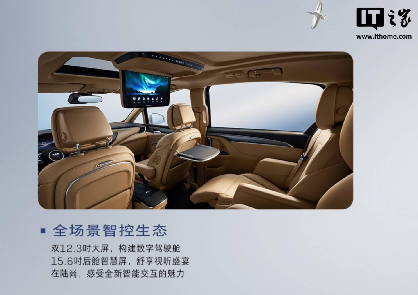 步入车内,GL8陆尚MPV的科技感与豪华感扑面而来。中控台采用了12.3英寸液晶仪表盘与12.3英寸连体大屏设计,整体布局与前代GL8 ES陆尊有着异曲同工之妙。怀挡设计、四辐式方向盘以及副驾驶座的老板键等配置,都彰显了其商务定位。车辆后排还配备了15.6英寸吸顶屏,第二排座椅更是贴心设置了小桌板,为乘客提供了更加便捷的乘车体验。