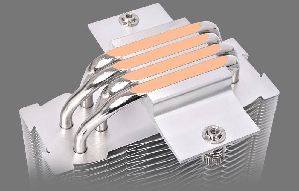 UX400系列散热器采用了单塔单风扇设计,结构上简洁明了。其核心亮点在于配备了四根直接与处理器接触的U型6mm热管,这种设计确保了高效的散热性能。散热器的尺寸为125×92×152毫米,紧凑的体积使其能够轻松适应大多数机箱。