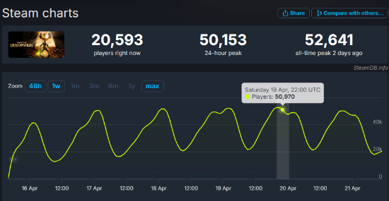 据透露,RuneScape: Dragonwilds项目于2021年正式启动,尽管在市场推广方面并未进行大规模的宣传,但游戏依然凭借自身魅力赢得了大量玩家的青睐。截至4月29日,该游戏的24小时玩家峰值已经超越了两款热门生存游戏,达到了惊人的52,641人,且在线人数持续保持在五万以上,这一成绩无疑彰显了其强大的市场潜力。