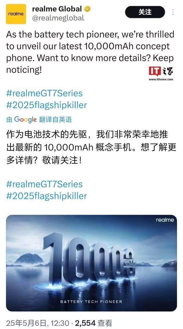 据悉,这款概念手机隶属于realme的GT系列,尽管具体型号尚未公布,但从官方推文带有的“realmeGT7Series”话题标签中,不难推测其归属。从官方发布的图片来看,该机的包装和后盖均显著标注了10000mAh的字样,预示着它将主打超长续航的卖点。