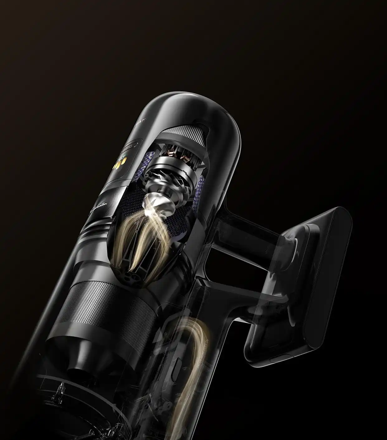 这颗“核心心脏”的突破,打开了追觅技术创新的“闸门”。在吸尘器领域,基于20万转马达的动力优势,团队很快针对用户的痛点展开系列攻坚。“灵鲨主动割毛技术”开辟全新的防缠绕技术路线,彻底解决行业痼疾;“140°广角绿光显尘功能”让微尘被看到;“最小高效水气分离装置”打破吸尘器遇水停摆问题......追觅吸尘器每一次技术创新都掷地有声。