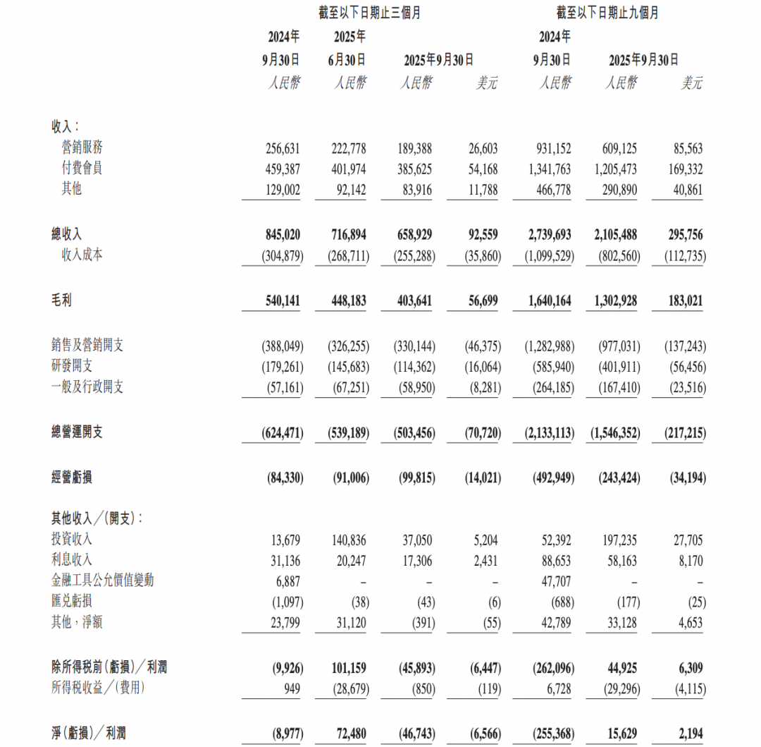 知乎2025年Q3营收6.59亿元 全年盈利目标不变