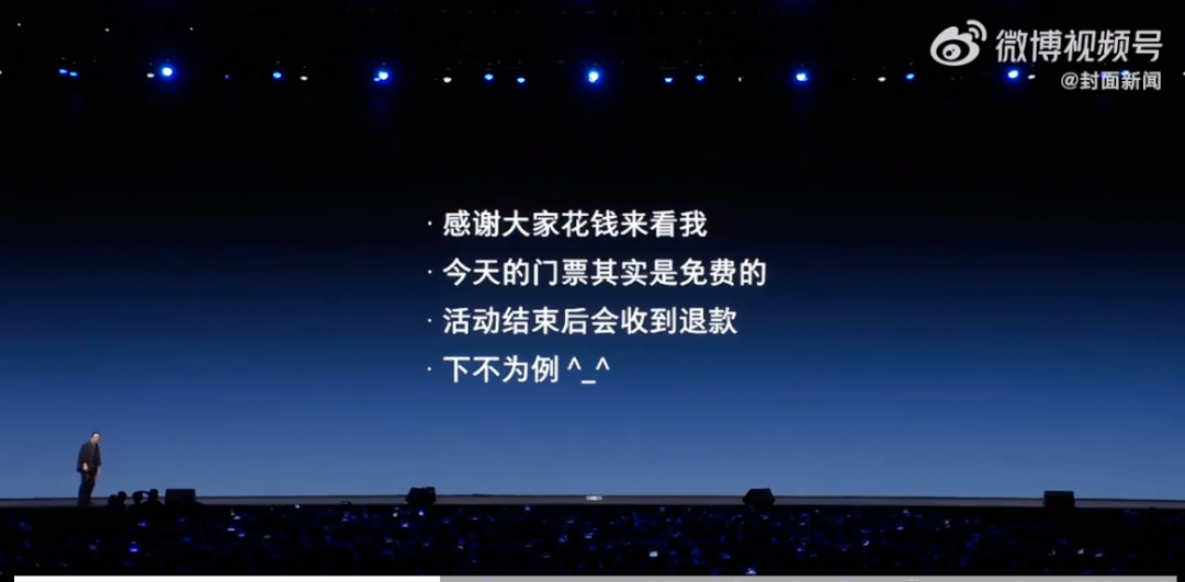 大会临近结束时,罗永浩宣布发布会结束后,大会的观众门票费用将原路退回。