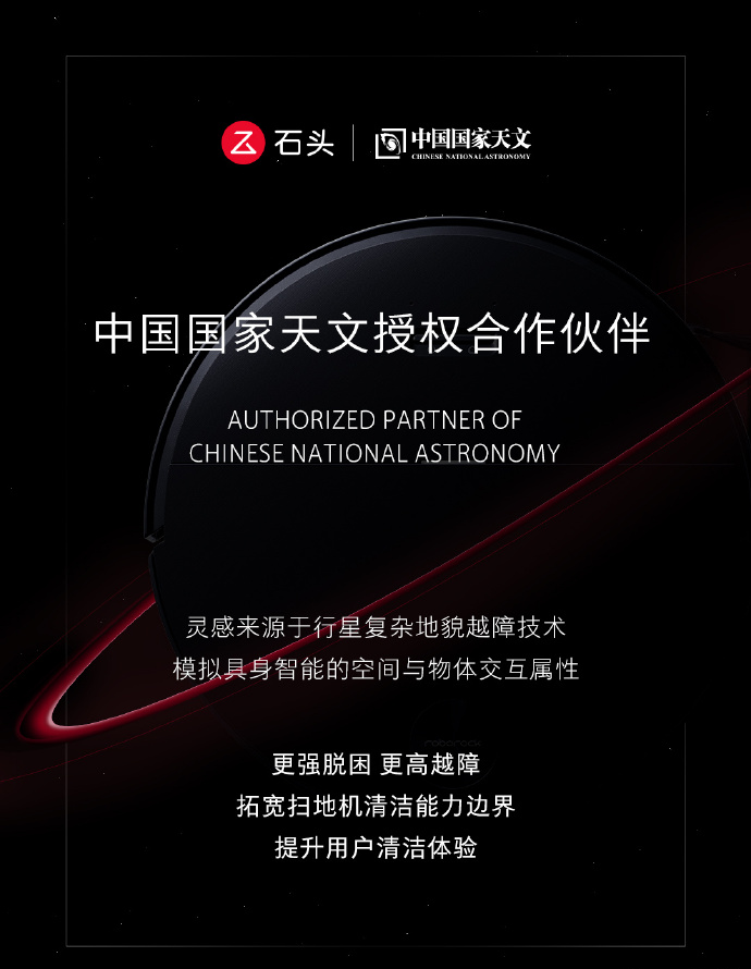 值得一提的是,石头科技官宣与中国国家天文馆展开官方合作,G30S Pro 底盘升降这一技术路径,正是借鉴了行星探测器在复杂地貌中的通过逻辑。这也意味着太空探索级机械与智能技术,正逐步转化为普通家庭可感知、可使用的真实体验。但这一技术路径并非概念移植,而是直接体现在扫地机器人对真实空间的理解与行动方式之中。