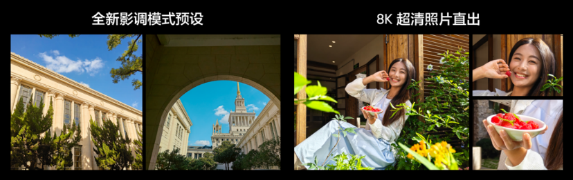 人像拍摄方面,多焦段人像镜头包覆盖从1倍到4倍经典人像焦段,带来海报级超清人像照片。主摄方面,搭载1/1.56"索尼IMX896传感器,支持8K超清直出与全新影调模式,可自定义色彩、锐度、颗粒等参数。此外还支持后期补帧生成实况照片慢动作,以及4K高清视频录制,满足日常创作趣味和高清分享需求。