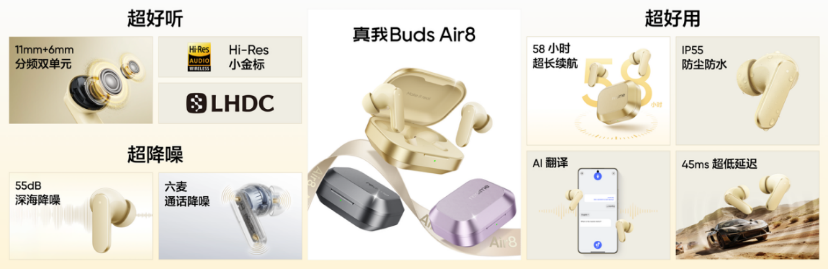 真我Buds Air8同步发布,同档最强音质+同档最强降噪