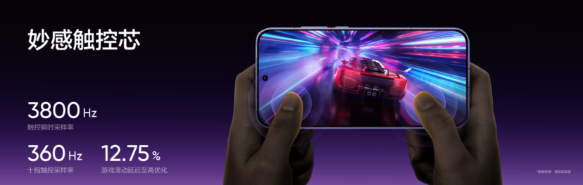 真我Neo8更带来超30款热门手游原生165帧模式,覆盖FPS、MOBA、竞速、格斗、音游五大主流品类。165Hz相比120Hz每秒多渲染45帧,画面更丝滑,高速移动场景全面告别拖影。真我Neo8还搭载新一代妙感触控芯,最高提供3800Hz瞬时触控采样率,十指360Hz报点率,配合旗舰同款游戏触显同步技术,让触控事件与显示帧精准对齐,让FPS游戏开镜瞄准响应更快,决胜击杀赢在毫秒。此外真我Neo8还配备超声波3D指纹,支持湿手秒解,让夜晚解锁不晃眼;晶铠玻璃提升了意外防护的全面保障。